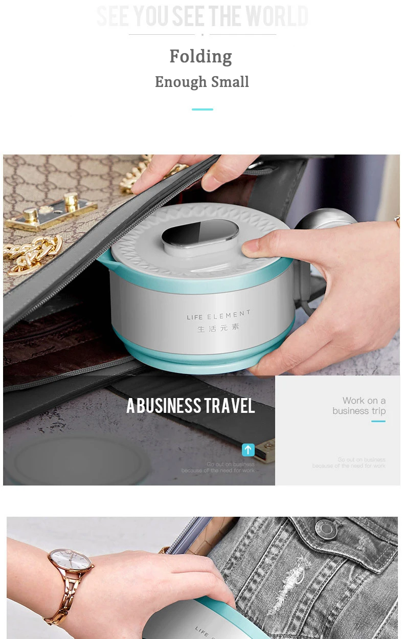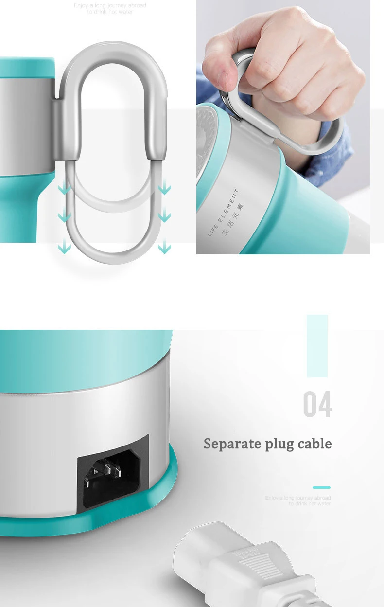 هذه الغلاية صُممت لترافقك أينما ذهبت! وزنها الخفيف وتصميمها القابل للطي يجعل تخزينها في الحقيبة أو حقيبة الظهر أمرًا سهلًا جدًا. وداعًا للقلق حول نظافة غلايات الفنادق—أنت الآن تمتلك غلايتك الخاصة دائمًا.