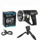 Haute luminosité et durabilité : la longueur d’éclairage de la lampe de poche LED est d’environ 10 terrains de football (1000 mètres). Luminosité jusqu’à 100 000 lumens. Le spot adopte une structure entièrement fermée, qui est anti-explosion, anti-poussière et résistante aux chocs. C’est l’outil d’éclairage parfait pour la chasse, la randonnée, le camping, la voile, l’astronomie ou les urgences en cas de panne de courant. Vous pouvez le définir comme un long projecteur pour faciliter la recherche de cibles.Projecteur multifonction pratique : spot super lumineux équipé de perles de lampe P90 de 50 W 100 000 lumens. La lumière principale de la lampe de poche dispose de trois modes : haute lumière, faible lumière et stroboscopique, et est équipée de lentilles filtrantes bleues amovibles, jaunes et rouges. Ils offrent une meilleure vision nocturne et vous pouvez changer différentes sources de lumière selon vos besoins.Lumière douce latérale : la lumière latérale utilise 35 perles de lampe COB. Il dispose de 3 modes de luminosité : haute lumière, faible lumière et lumières d’avertissement rouges et bleues. Notre lampe torche douce est votre meilleur choix lorsque vous travaillez, lisez ou campez. Les lumières d’avertissement clignotantes rouges et bleues peuvent être utilisées comme lumières stroboscopiques d’avertissement de sécurité à la maison.Alimentation d’urgence : L’indicateur de batterie LED à côté du feu latéral permet de vérifier facilement si la batterie est suffisante avant utilisation. Le port USB peut être utilisé comme une source d’alimentation d’urgence quotidienne pour votre smartphone, vous aidant lors de vos voyages en plein air.