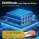 Durabilité et double charge solaire : Conçue comme une lampe solaire portable polyvalente, cette station de travail est équipée d’une batterie puissante de 26 000 mAh et d’une double charge (charge rapide USB en 6 à 8 heures ou recharge solaire en 48 heures au soleil). Idéale pour les aventures hors réseau, elle offre plus de 26 heures d’autonomie à 50 % de luminosité et 15 heures à pleine puissance. De plus, cette lampe de travail d’urgence peut également servir de source d’alimentation de secours pour recharger d’autres appareils électroniques.Projecteur LED rechargeable ultra-lumineux : Équipé de 84 LED améliorées, ce projecteur LED rechargeable délivre 26 000 lumens en cinq modes : blanc, ampoule, luminosité 100 %/50 % et SOS. L’affichage intelligent de la charge de la batterie (25 %-100 %) assure un éclairage fiable sur les chantiers ou en cas d’urgence.Compagnon de camping multi-scénarios : Conçue comme une lampe de camping rechargeable essentielle, elle comprend un support réglable à 180°, des crochets intégrés et des aimants robustes. Accrochez-la à une tente, fixez-la à une surface métallique ou utilisez-la comme lampe autonome pour les barbecues, la pêche ou les réparations en bord de route.Lampe de travail rechargeable robuste : Fabriquée en ABS de qualité industrielle et étanche IP66, cette lampe de travail LED rechargeable résiste aux chutes, à la pluie et aux températures extrêmes. Son port de charge étanche et son boîtier résistant aux chocs la rendent idéale pour les ateliers, les garages et les projets extérieurs.Solutions polyvalentes d’éclairage de travail à LED : Des pannes de courant aux réparations automobiles, cette lampe de travail rechargeable s’adapte à tous les scénarios. Utilisez-la comme projecteur de secours, lampe magnétique pour surfaces métalliques ou balise portable pour le camping et la randonnée, garantissant ainsi votre sécurité dans tous les environnements.