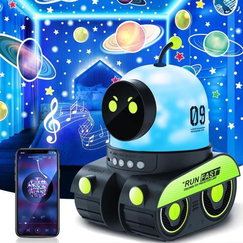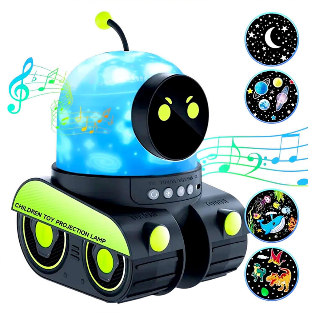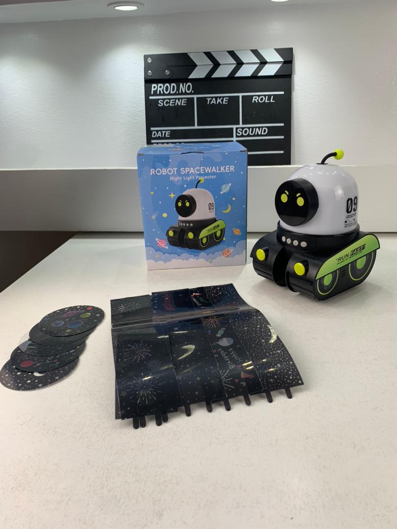 ⭐ المميزات :🎬 12 فيلم + 72 وضع إضاءة: يضوي السقف بنجوم، كواكب، المحيط… يخلي الطفل يعيش عالم خيالي وينعس بسهولة.🔊 سبيكر بلوتوث مدمج: ديري موسيقى هادئة ولا أصوات طبيعية (white noise) باش الطفل ينعس مرتاح.🔋 قابل للشحن USB: بطارية 1200mAh، محمول ولاسلكي – يقدر الطفل يديه وين ما يحب.💡 سطوع 200 لومن + حماية العيون: صور واضحة ومضيئة، آمنة لصحة عينين الطفل.🎁 هدية مثالية: لأعياد الميلاد، المناسبات ولا كديكور لغرفة الأطفال.🤖 تصميم روبو متحرك: يبان كي روبو صغير بعجلات يتحرك قدام/لور، يسار/يمين… يجمع بين لعبة وبروجكتور موسيقي!📏 المواصفات :الحجم: 17 × 14 × 19 سمالوزن: 610غ